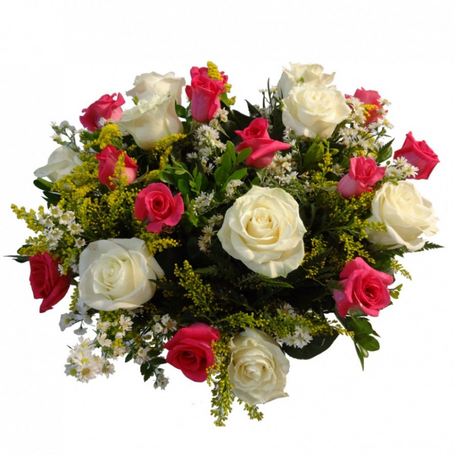 Buquê de Rosas Brancas e Rosa mescladas - 12 Rosas